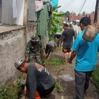 Jambi — Babinsa Kelurahan Cempaka Putih, Serka Ilham, mengikuti kegiatan gotong royong bersama warga di Jalan…