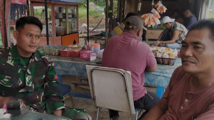 Kegiatan berlangsung di sebuah warung makan yang kerap menjadi titik berkumpul warga. Dalam suasana santai dan penuh keakraban, Babinsa berdialog langsung dengan masyarakat, membahas berbagai persoalan lingkungan sekaligus memperkuat silaturahmi.