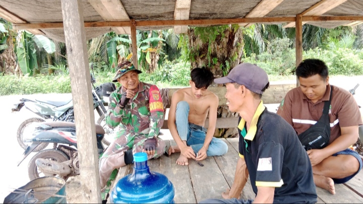Sengeti – Babinsa Koramil 05/Sengeti Kodim 0415/Jambi, Sertu Ugeng Haryono, melaksanakan komunikasi sosial dengan warga Desa Binaan di Muaro Jambi. Kegiatan ini bertujuan untuk memberikan himbauan kepada masyarakat, khususnya orang tua dan pemuda, tentang bahaya permainan game judi online yang semakin marak.
