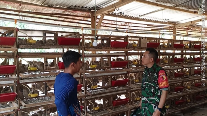 JAMBI, — Babinsa Kelurahan Olak Kemang, Koramil 415-08/Danau Teluk Kodim 0415/Jambi, Serka Suherman turun langsung ke wilayah binaan untuk melaksanakan komunikasi sosial (komsos) dengan pelaku usaha peternakan burung puyuh milik Jupri, Senin (6/4/2026).