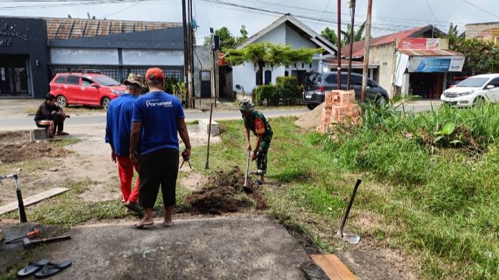 JAMBI – Kepedulian TNI terhadap masyarakat kembali terlihat. Babinsa Kelurahan Ulu Gedong Koramil 415-08/Danau Teluk Kodim 0415/Jambi, Serka Haryadi, turun langsung membantu warga membangun pagar rumah di wilayah binaannya.