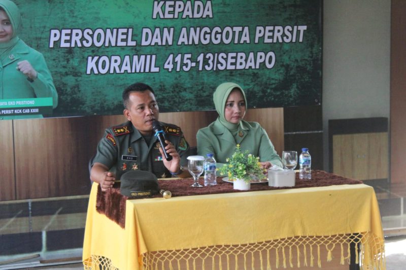 Hal tersebut dikatakannya di hadapan anggota Babinsa jajaran Koramil 415-13/Sebapo bersama Anggota Persit saat memberikan pengarahan dalam kunjungan kerja perdananya bersama Ketua Persit KCK Cabang XXIII Kodim 0415/Jambi Ny. Fina Yana di Makoramil Sebapo, Kec. Mestong, Kabupaten Muaro Jambi, Jambi, Selasa (20/6/2023).