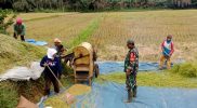 Babinsa Mersam Dampingi Petani Panen Padi di Olak Kemang
