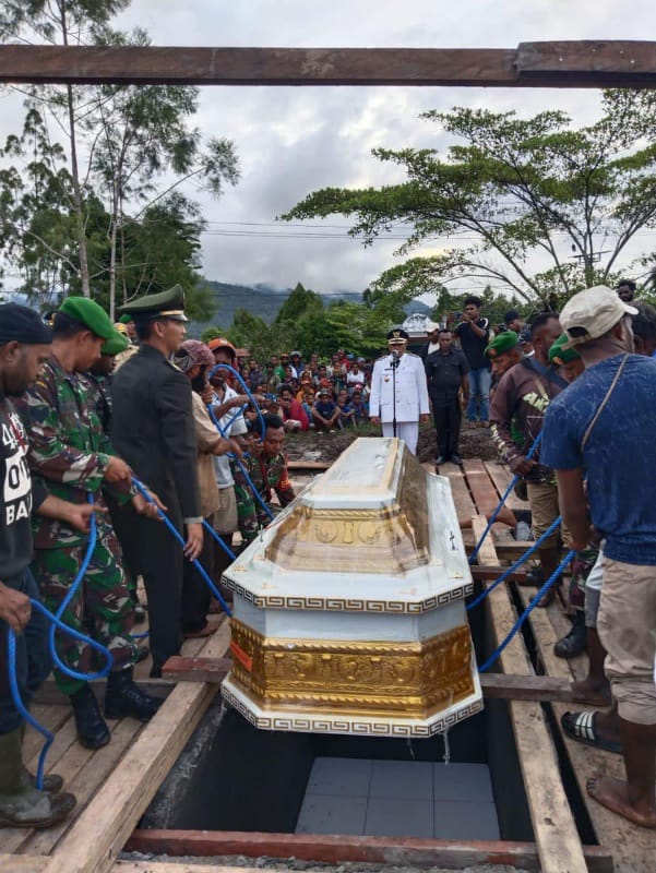 SRIWIJAYADAILY – Kabar duka meninggal dunianya Wakil Bupati Kab. Yalimo membawa duka juga bagi aparat yang bertugas di wilayah tersebut. Oleh karenanya, Satgas Yonif Raider 200/BN yang berada di wilayah Kab. Yalimo langsung gerak cepat membantu pemakaman Wakil Bupati Yalimo Alm. Bapak. Jhon Wilil, A. Md. Par di Distrik Elelim Kab. Yalimo Papua, Selasa, (02/05/2023).