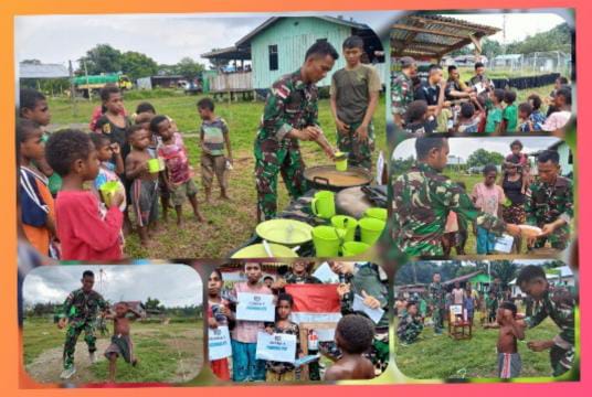 SRIWIJAYADAILY.CO.ID – Dalam rangka menyambut Hari Anak Nasional, Pos Muara Nawa Satgas Yonif Raider 200/BN menyelenggarakan perlombaan dan makan bubur gratis bersama dengan anak-anak di Kampung Muara Nawa, Distrik Airu, Kab. Jayapura, Papua, Rabu (19/07/2023).