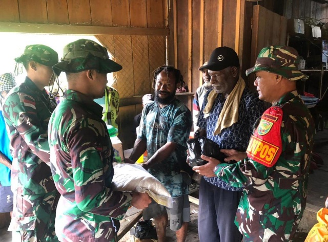 Menerima bantuan dan perhatian dari TNI, Bapak Ondoafi Naftali Awatu selaku kerabat tertua dari almarhum mengucapkan banyak terima kasih kepada personel Pos Benawa.