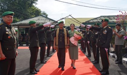 Metro – Prajurit dan Pegawai Negeri Sipil (PNS) Korem 043/Garuda Hitam (Gatam) menyambut kedatangan Kolonel Kav…